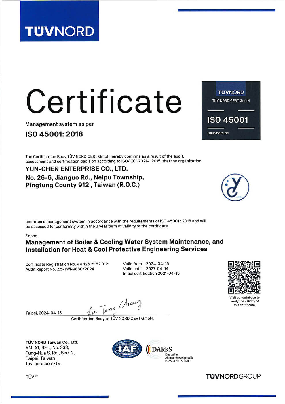 中華壓力容器協會聘請總經理陳炳宏為鍋爐訓練課程,鍋爐用水及處理的專業講師,並獲得科技大廠頎邦科技旗下之服務廠商,本年度累績服務客戶已達240家。 |