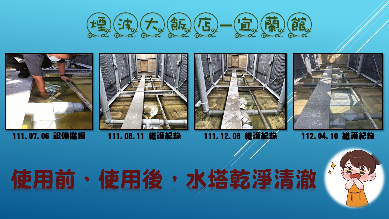 從去年開始,煙波大飯店也是原程CCD冷卻水處理的愛用戶囉!!